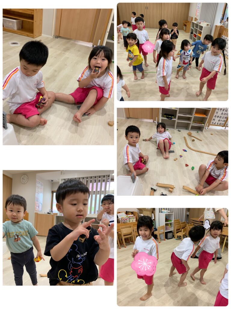 今日はおもちゃで遊んだり、制作をしたり、おりがみを折ったりして遊びました♪