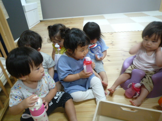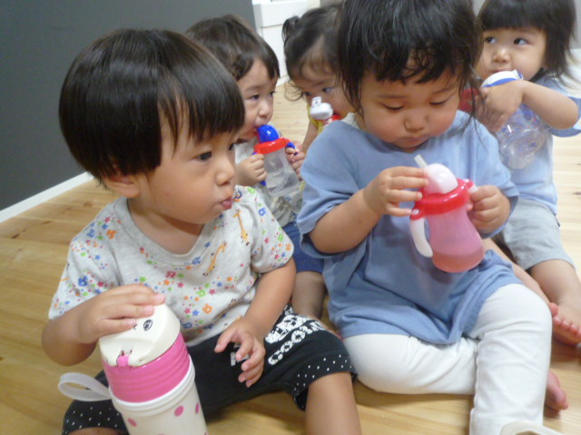 散歩から帰った後はしっかり水分補給。お茶美味しいね(*^_^*)