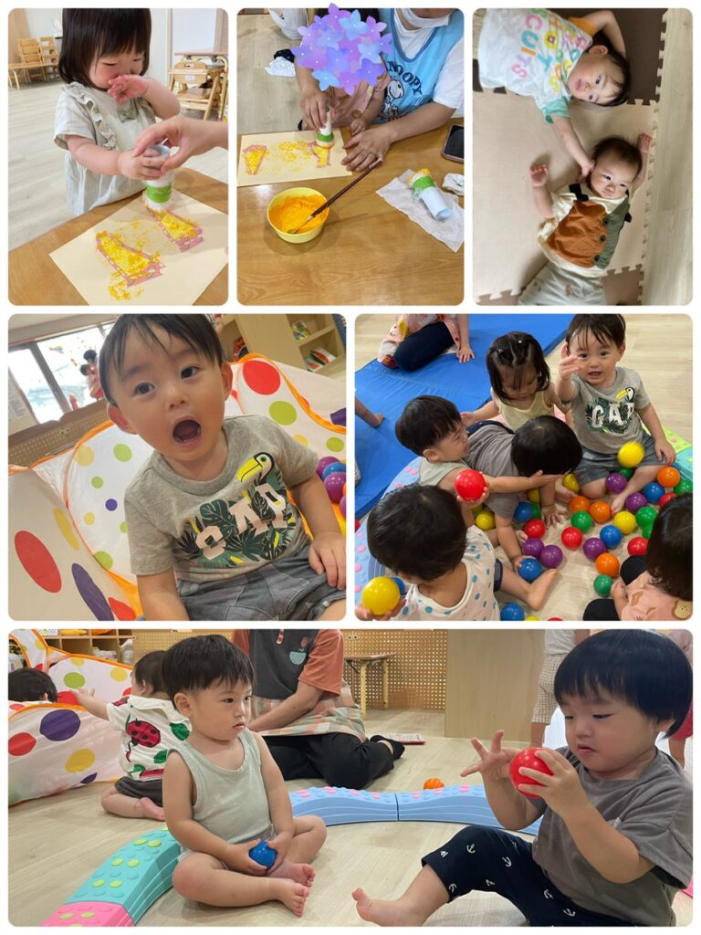 おひさま、ほし組さんは、製作をしたり、ボールプールや平均台、大きなブロックなど沢山のおもちゃで遊んだりしました✨✨沢山汗をかいたあと沐浴もしましたよ♬