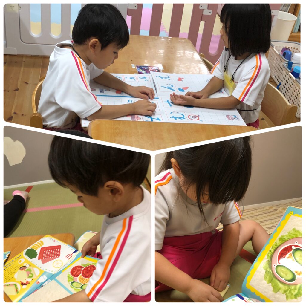 りすぐみ、ねずみぐみさんはワークブックをしました。シールをペッたんと上手に貼ることができました。お話もしっかりと聞いてニコニコ笑顔😊仲良く楽しく過ごしています。
