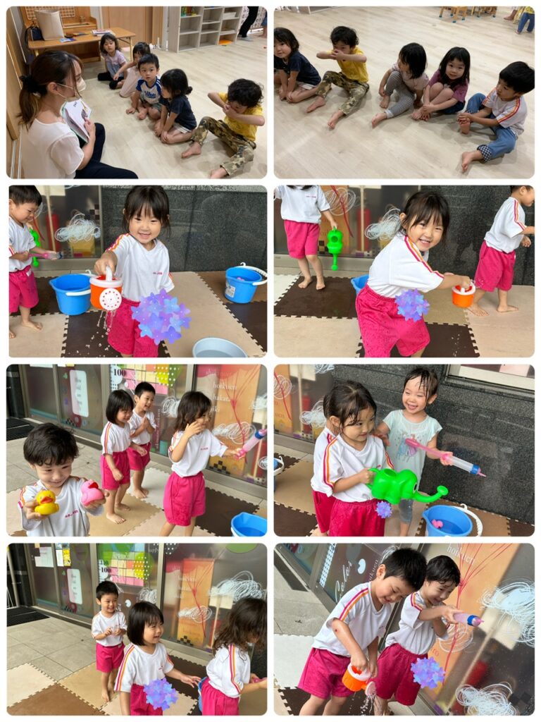 今日は、製作やおもちゃ、水遊び、お散歩など沢山のことをして過ごしました✨✨今日は曇り空で風も吹いていて少し気持ちの良い天候でしたね!!水遊びもお散歩も大喜びの子どもたちでした♡