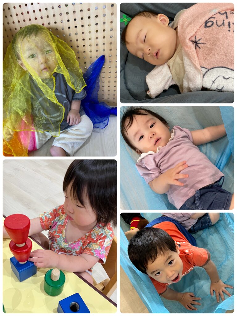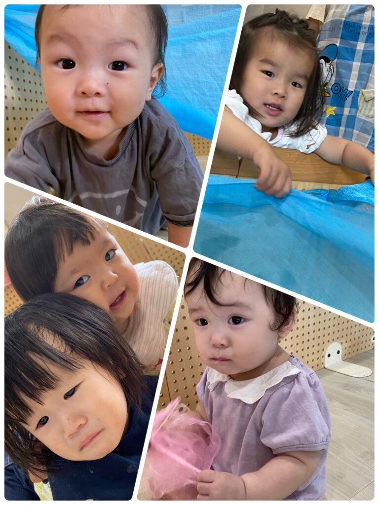 小さいお友達はおもちゃやカラフルスカーフで楽しみました☀