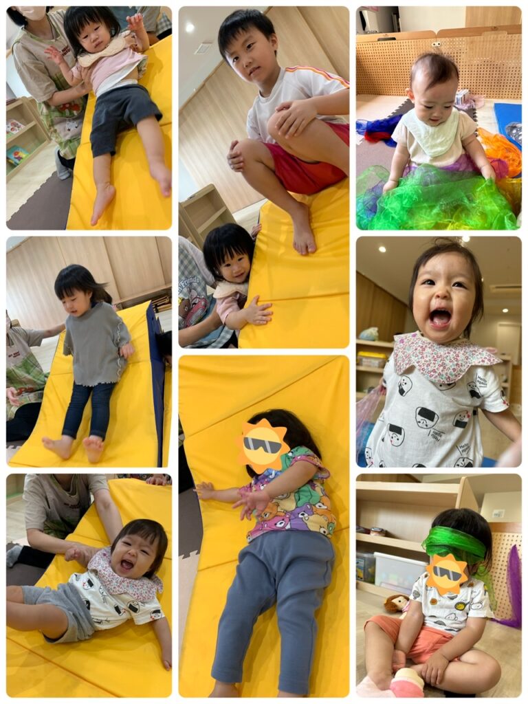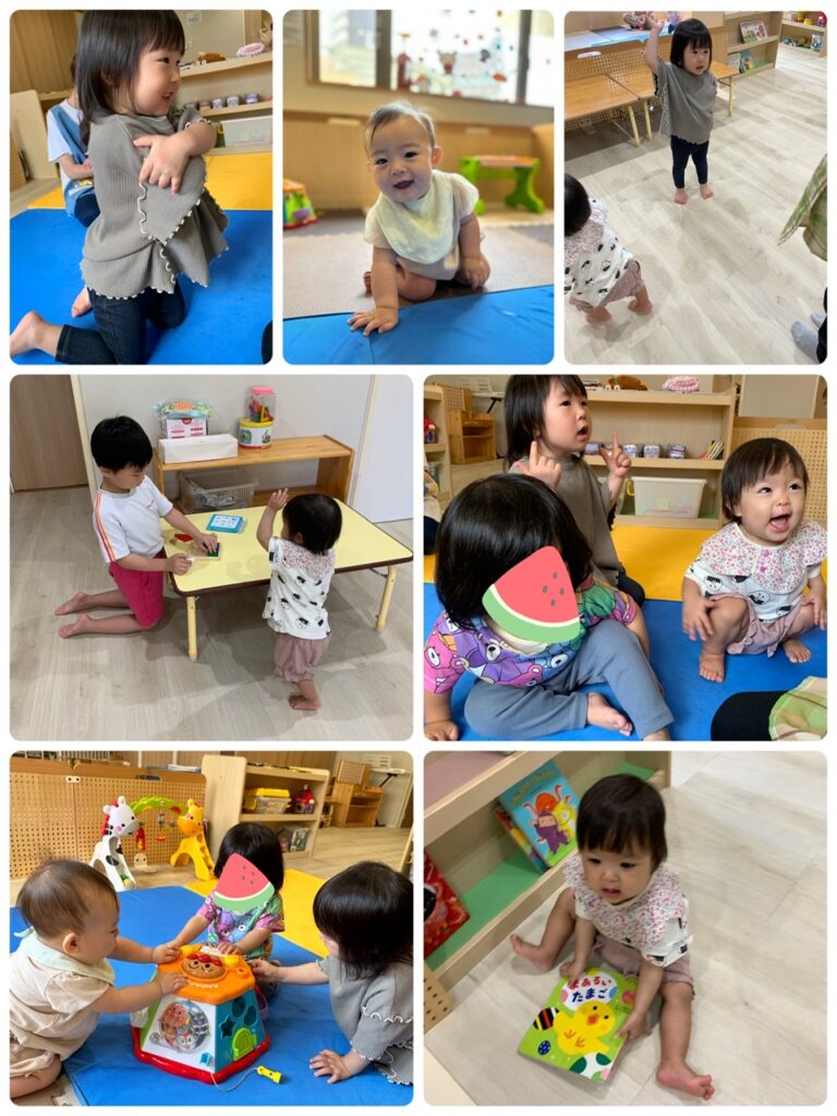 今日は6名のお友達が元気いっぱい登園してきました!!お部屋の中で体操やスカーフ、音が鳴るおもちゃなど沢山のことをして遊びました!!沢山遊んだ後はご飯も盛り盛り食べて、お昼寝もぐっすりな子どもたちでした♡