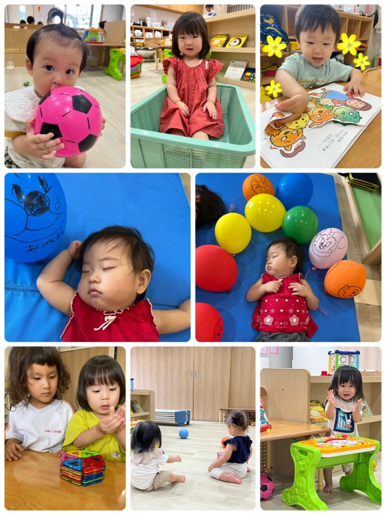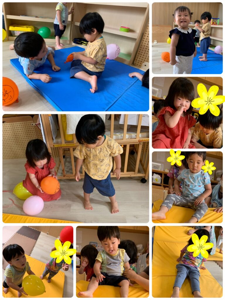 おひさま、ほし組さんは、滑り台や風船をして遊びました!!身体をたくさん動かしました!!