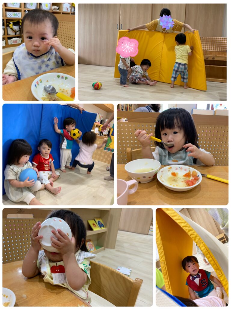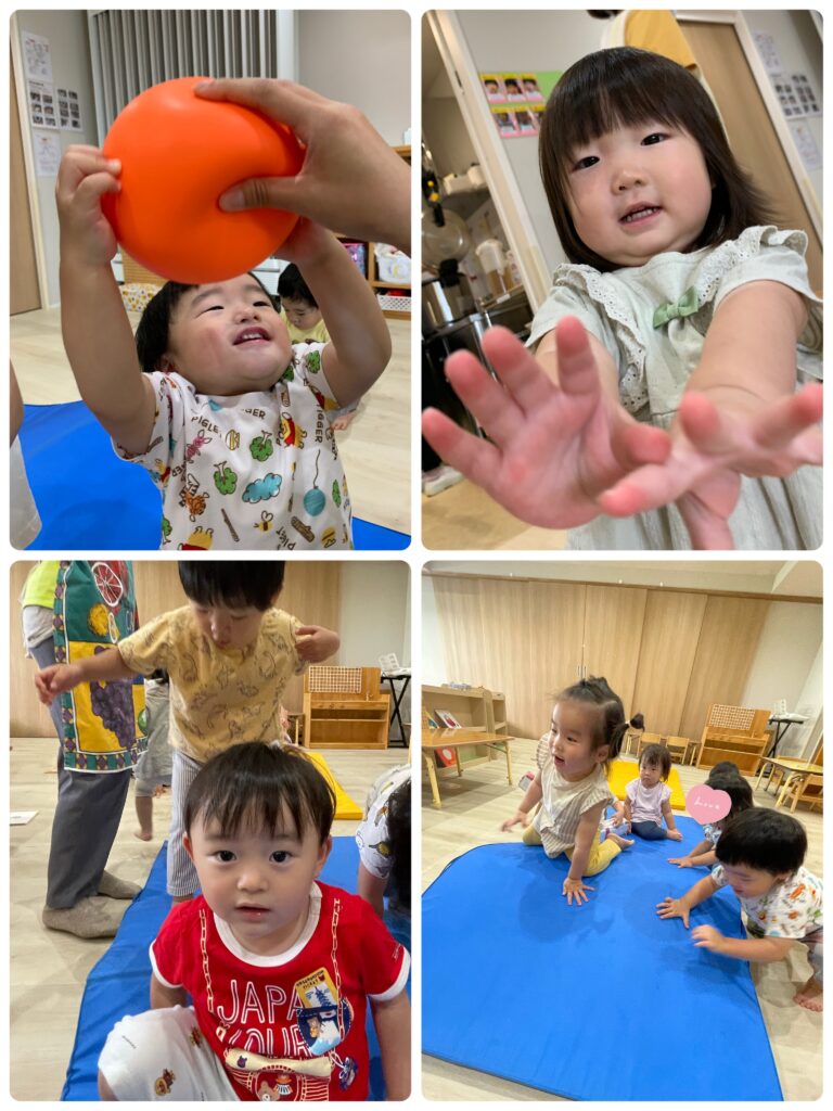 今日は小さいクラスのお友達は、マットやブロックやボールで遊びました(^▽^)
