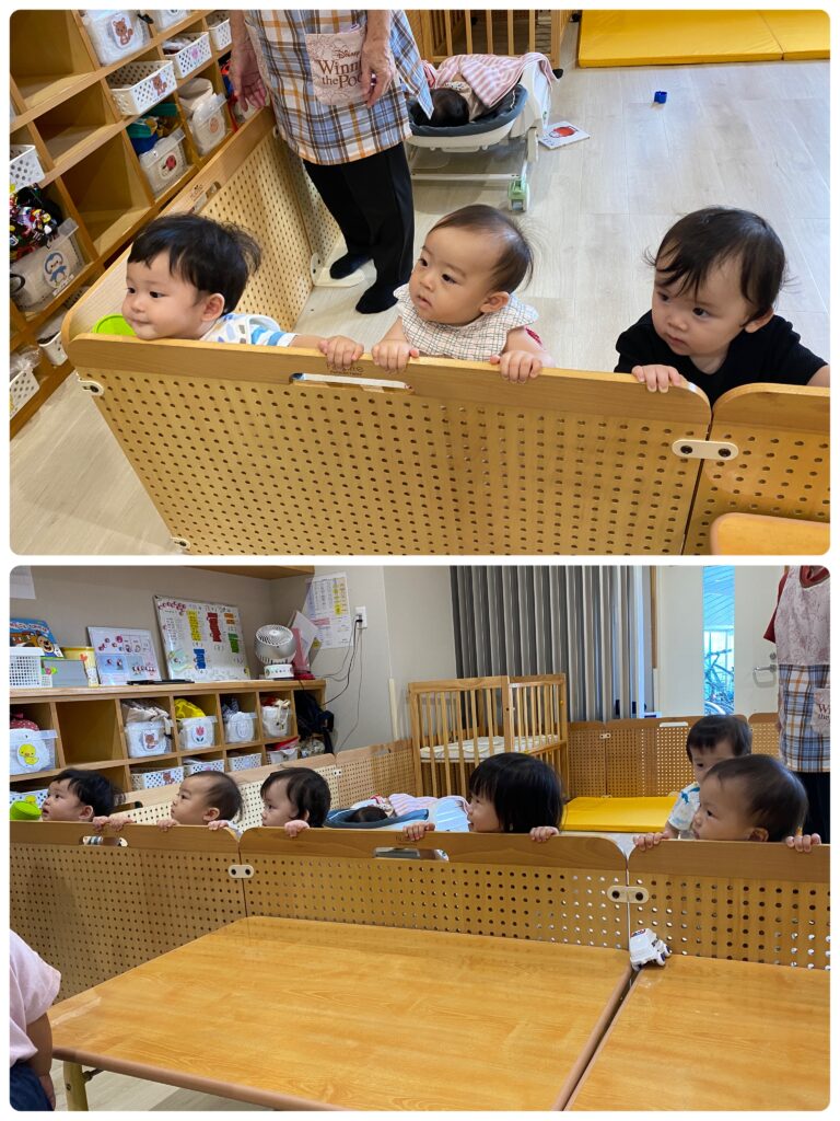 そんな様子を一生懸命つかまり立ちしてみている0歳児さんがとってもかわいくて面白かったです!