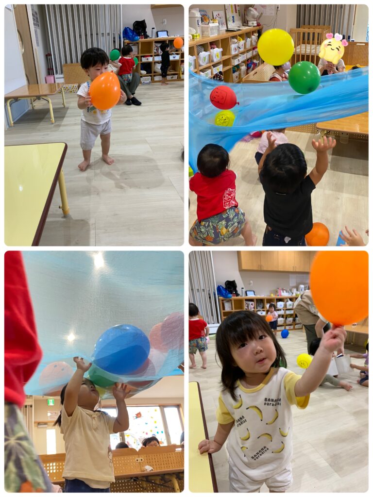 小さいお友達は風船や、スカーフであそんで大興奮♪