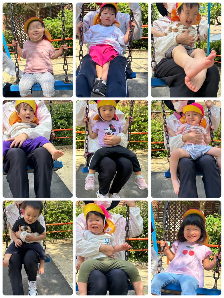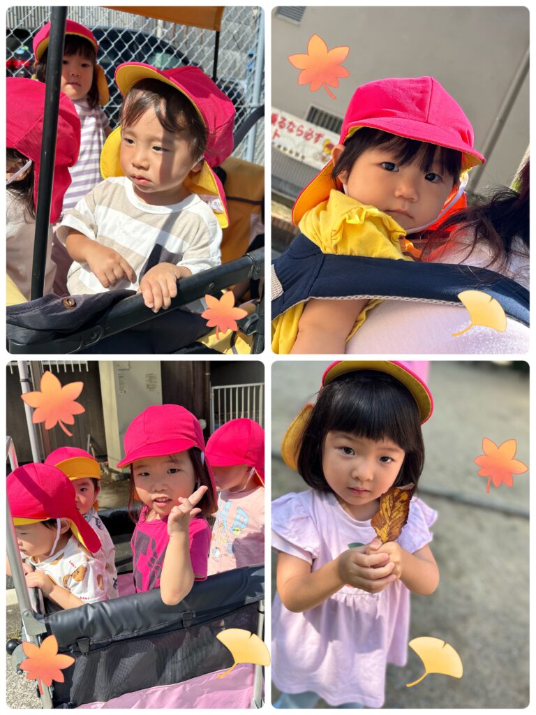 落ち葉を拾ったり、ブランコに乗ったりと