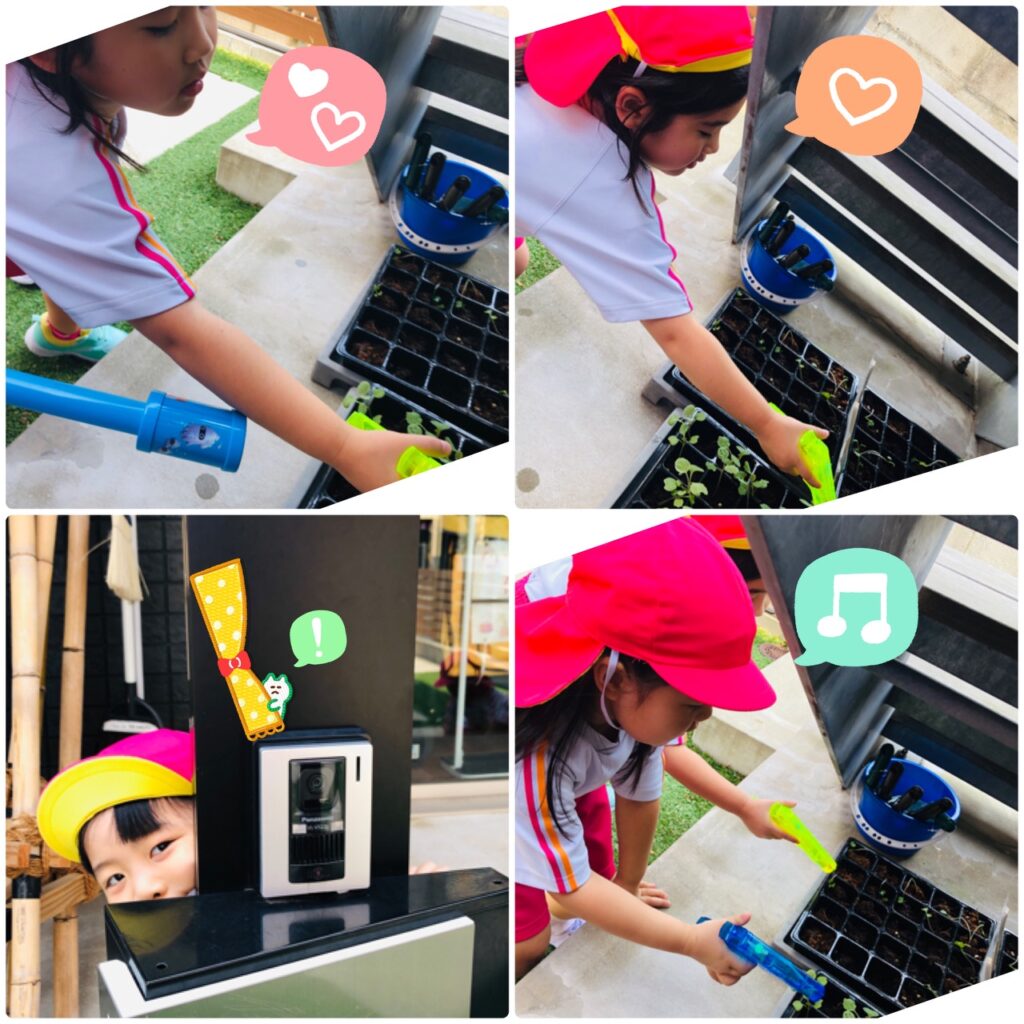 少し遊んで、ブロッコリーやキャベツにお水をあげてお部屋に退散しました☺