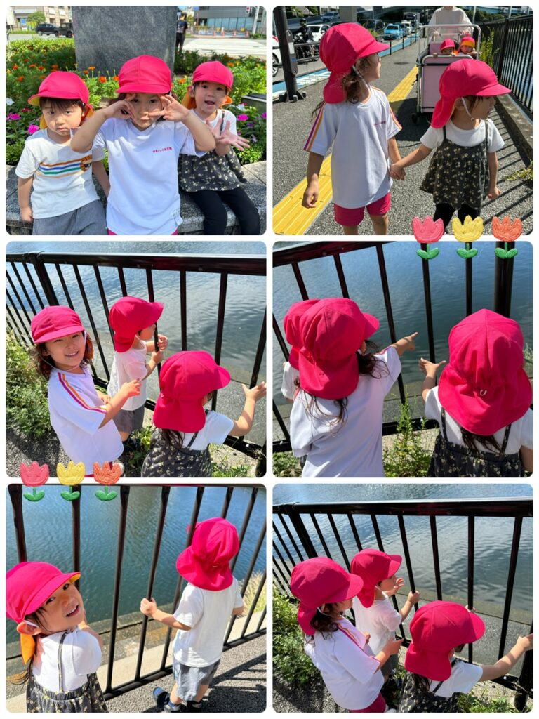 みんなで川沿いまでお散歩に行きました☆お外が大好きな子どもたち。川で鳥や魚が見えると指を差して大喜びでしたよ!!つき、あおぞら組のお友達は歌を歌いながらご機嫌に歩いていました♬風も吹いていて気持ちの良いお散歩となりました✨✨給食は子どもたちの大好きなうどんで沢山食べていました!!