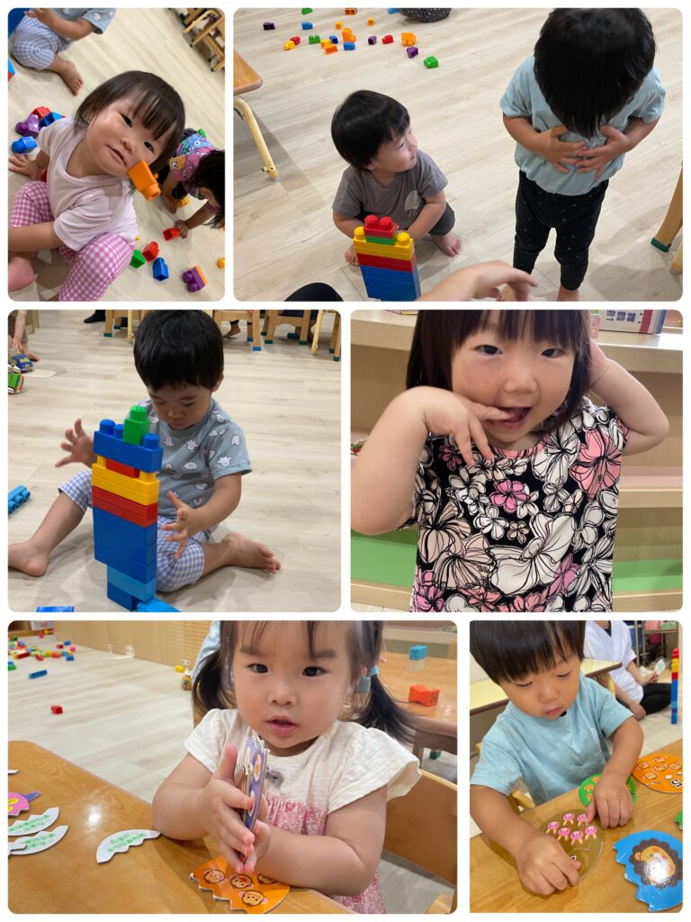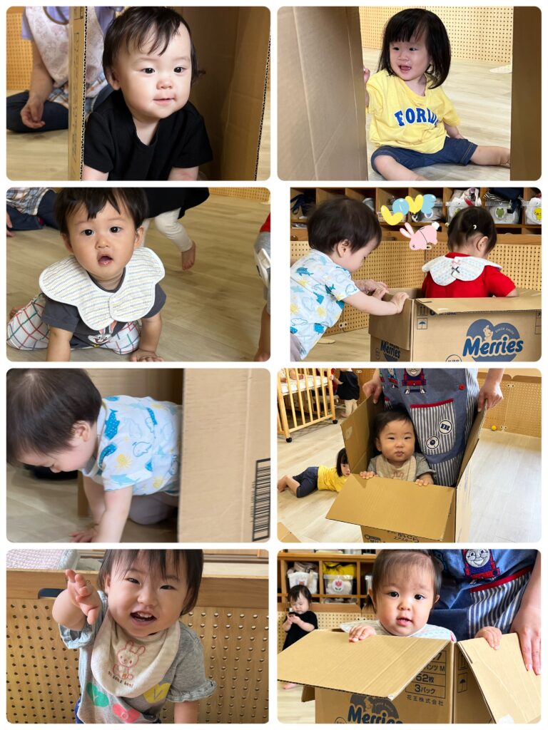 未満児さんは段ボールで遊んだり、ブロックであそんだりしています。