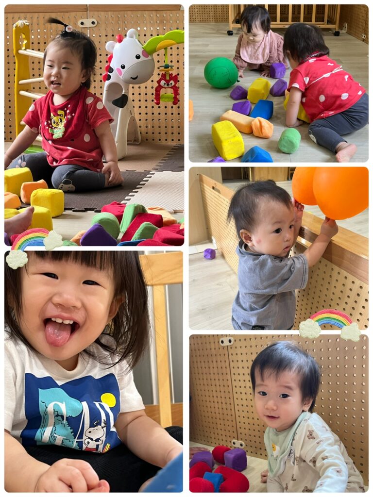 おひさま、ほし組さんは、風船や柔らかい布ブロックなど色々なおもちゃで遊びました!!どのおもちゃにも興味津々で夢中になって遊んでいました♬