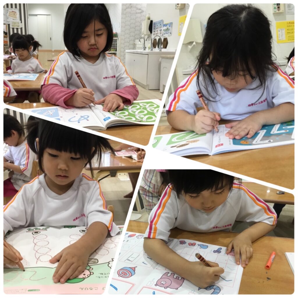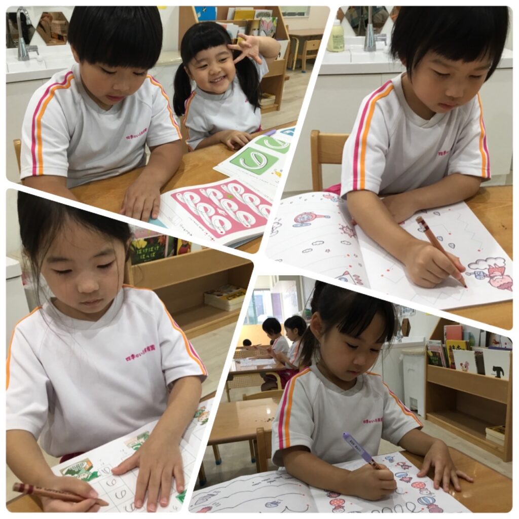 ひらがなや線を引く練習をみんな集中して真剣な眼差しでしていました!