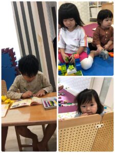 未満児さんはハウスの中に動物を入れて中に入って遊んだり、以上児さんは粘土やお絵描き・折り紙などして過ごしました♪