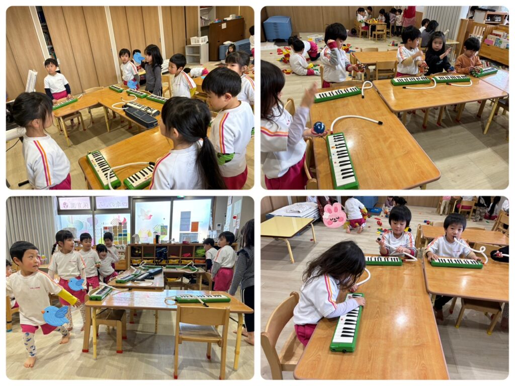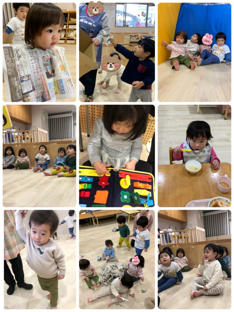 未満児さんも以上児さんもお部屋の中で過ごしました!!新聞紙やおままごと、粘土にお絵描き、色々な遊びに興味津々で思い切り楽しんでいた子どもたちでしたよ♡以上児さんは音楽教室もありました!!