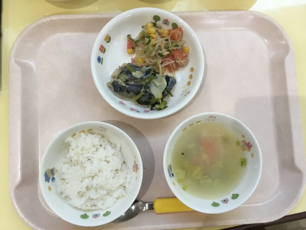 麦ごはん、みそ汁、さわらの香り蒸し、春雨サラダ