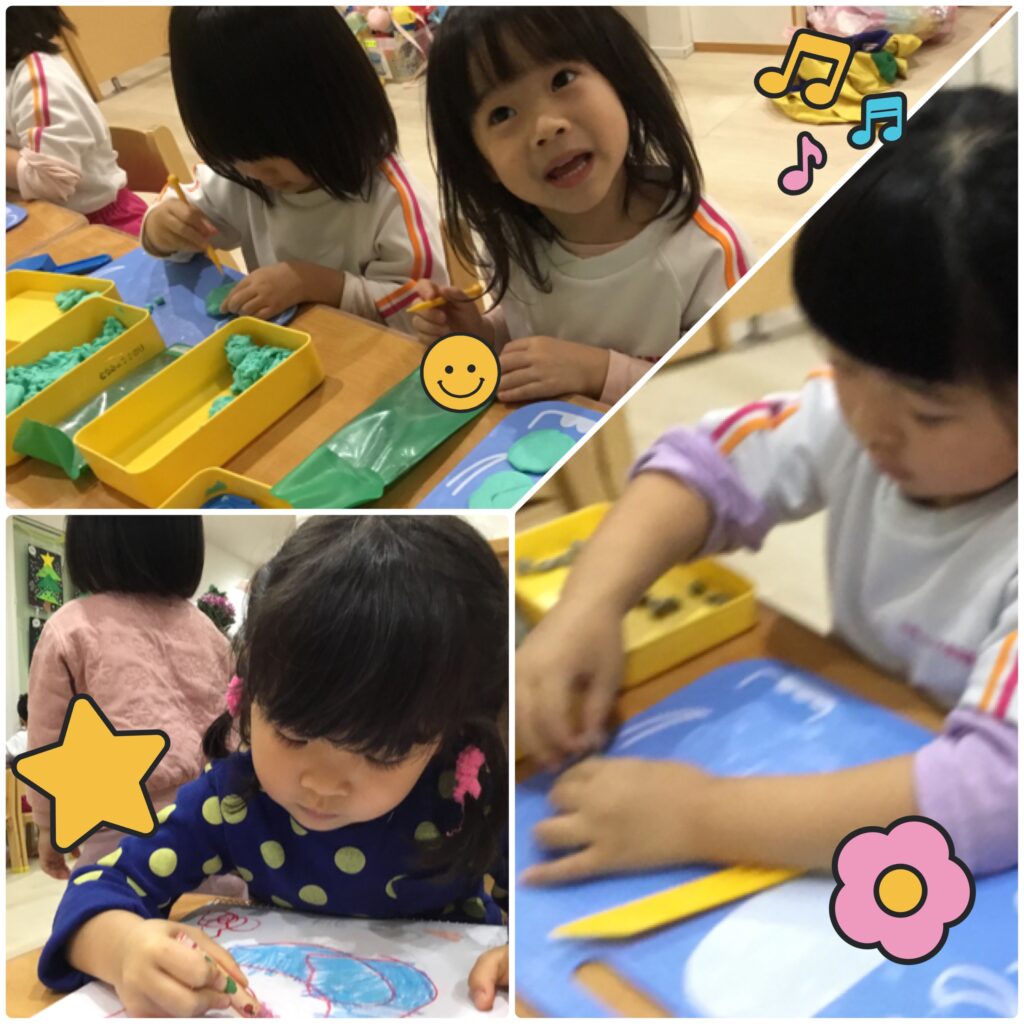 3・4・5歳児さんは粘土やお絵描きをしましたよ♪