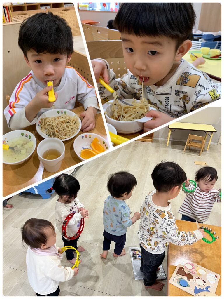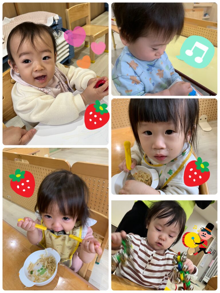 先生が鈴やタンバリンを出してくると目をキラキラさせて集まってくるお友達(^з^)-☆みんなそれぞれ好きな楽器を持って上手に音を鳴らしていましたよ(๑˃̵ᴗ˂̵)小さな音楽会のようでとっても可愛かったです♡♡♡