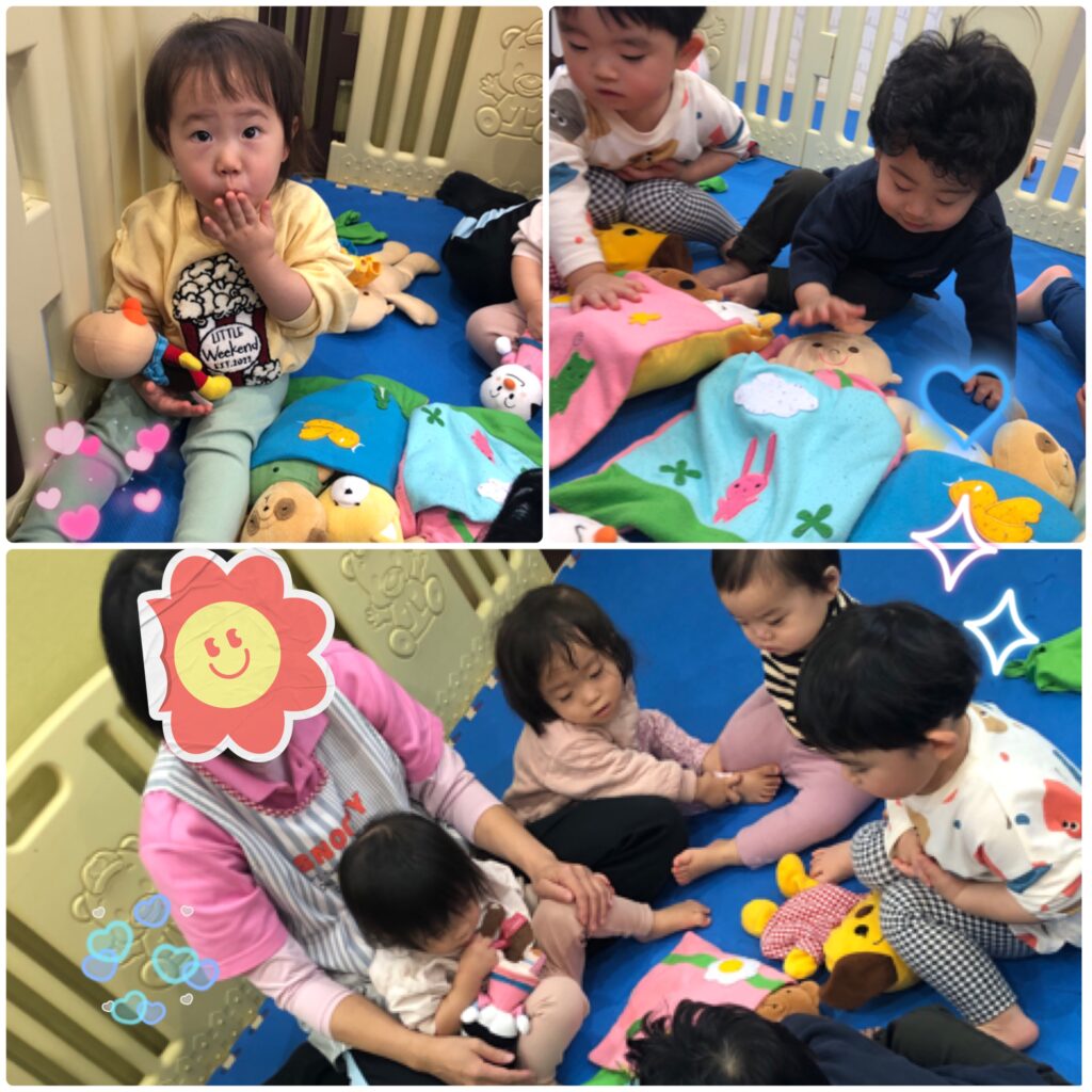 お人形にお布団をかぶせて「ねんね~」としている姿がとてもかわいらしかったです。