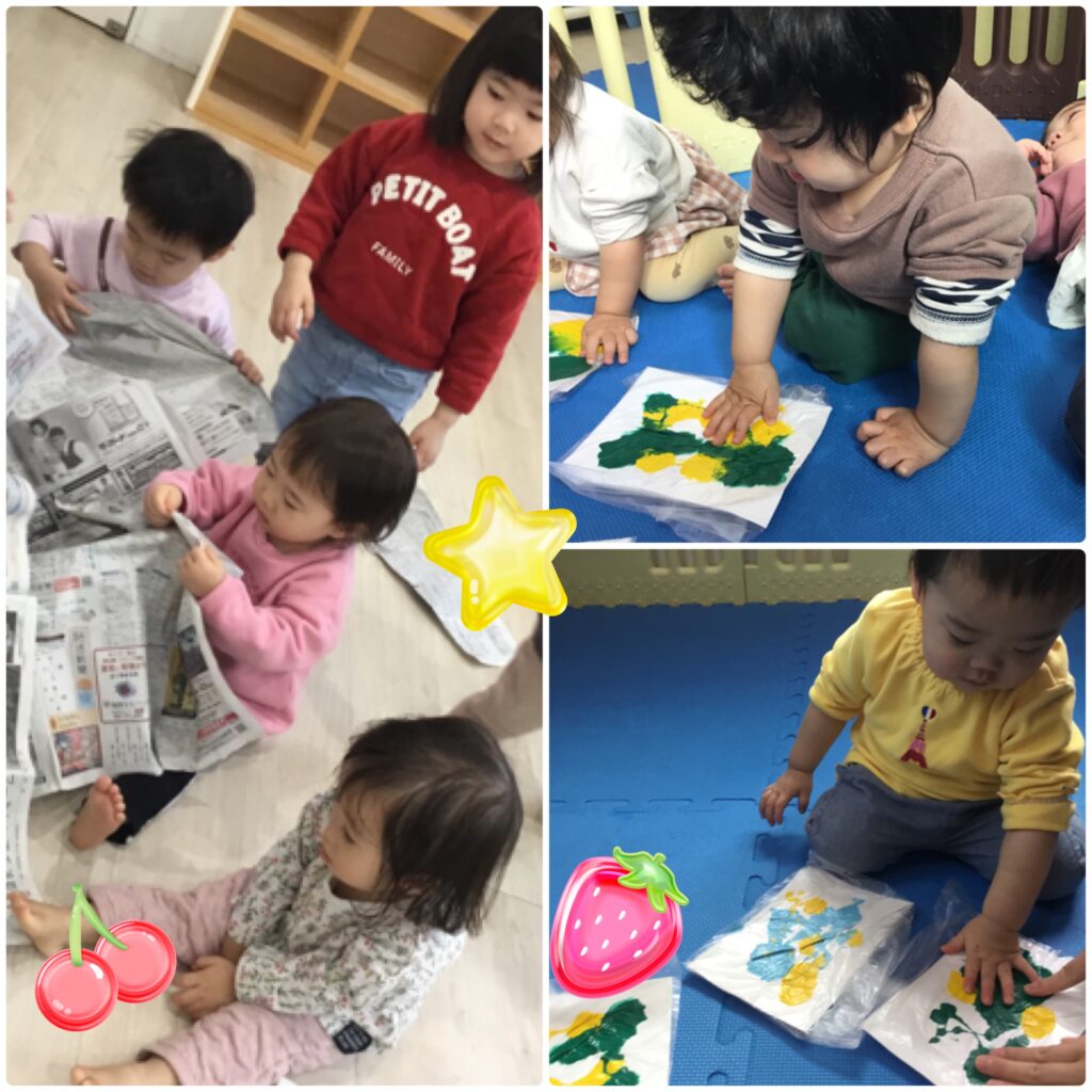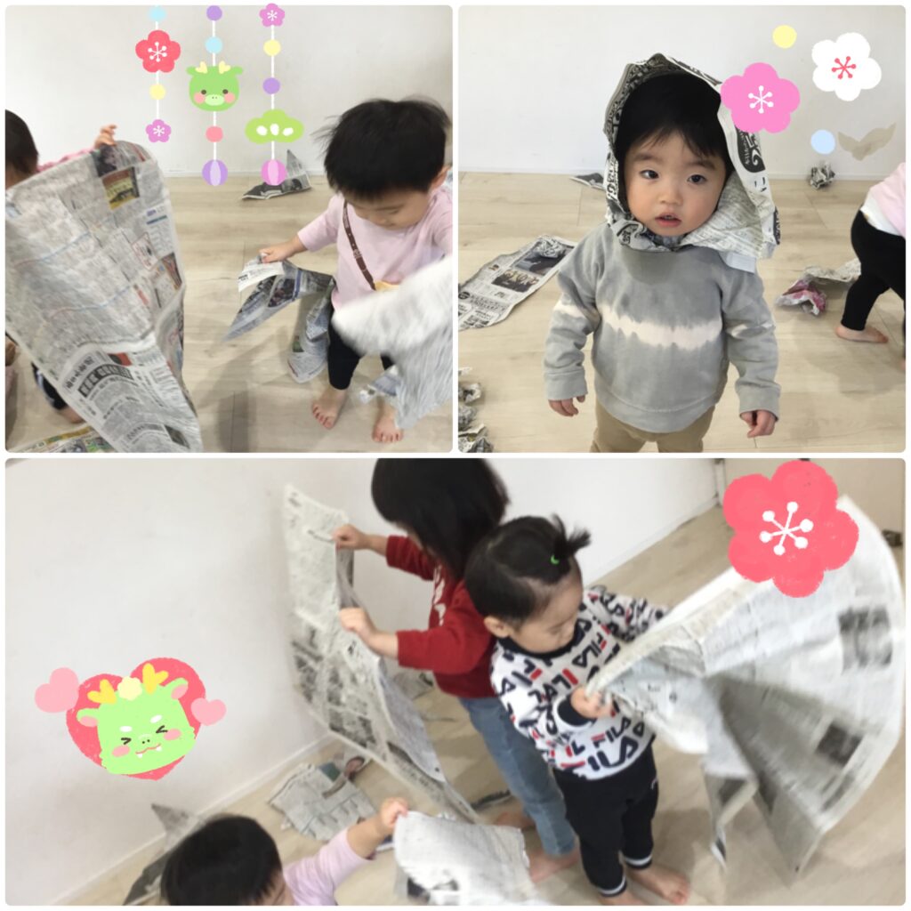 今日は0・1歳児さんは新聞紙遊びや、絵本の読み聞かせを楽しみました(*^_^*)