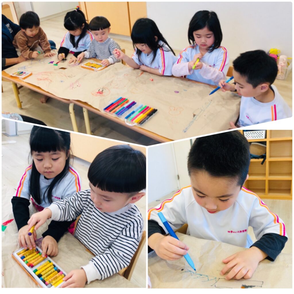 ブロック遊びを楽しんだ後は、みんなでお絵描きをしました🖍✨