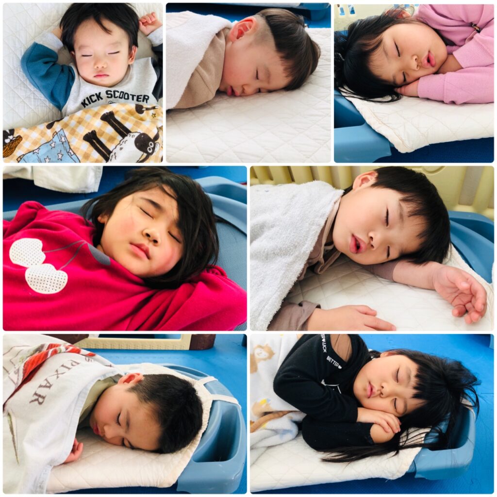 たくさん遊んで、給食も食べて、みんなぐっすりお昼寝しています💛