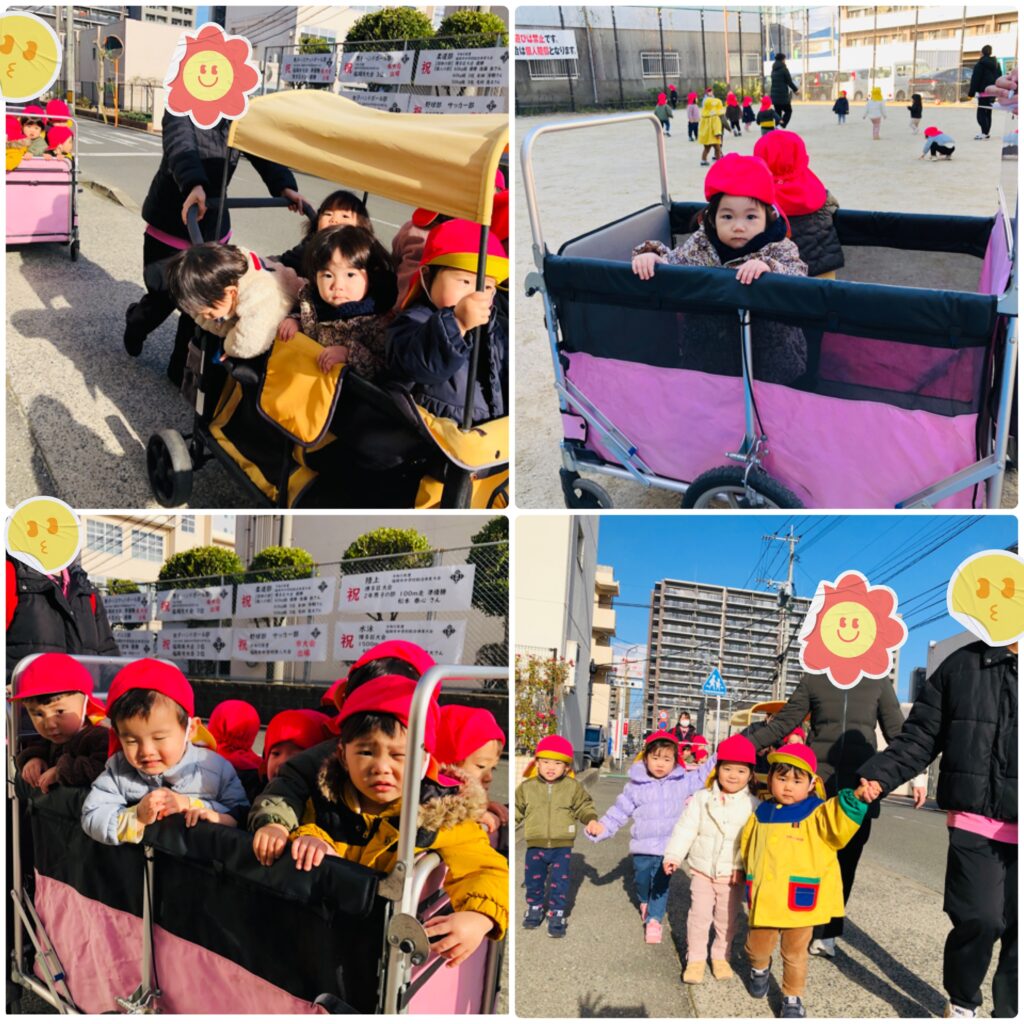 今日、0・1・2歳児さんは近くの公園へお散歩に行きました。