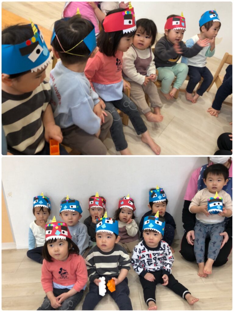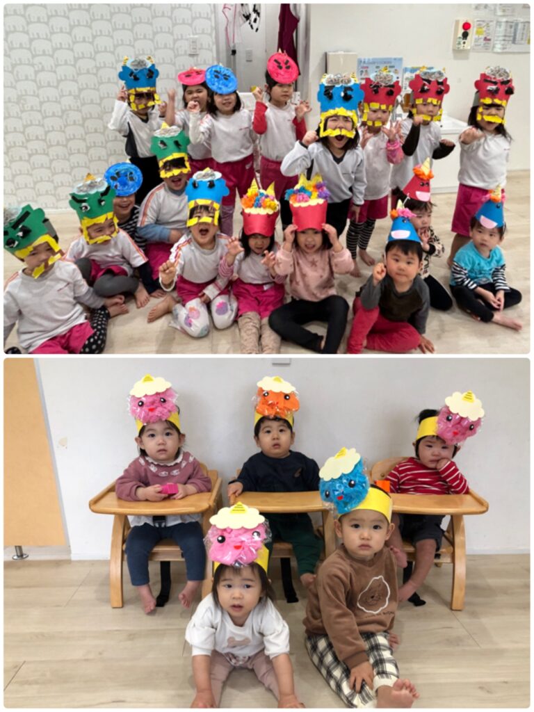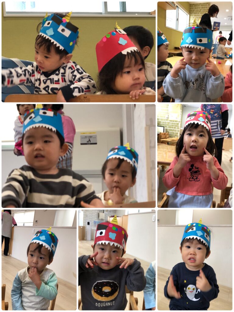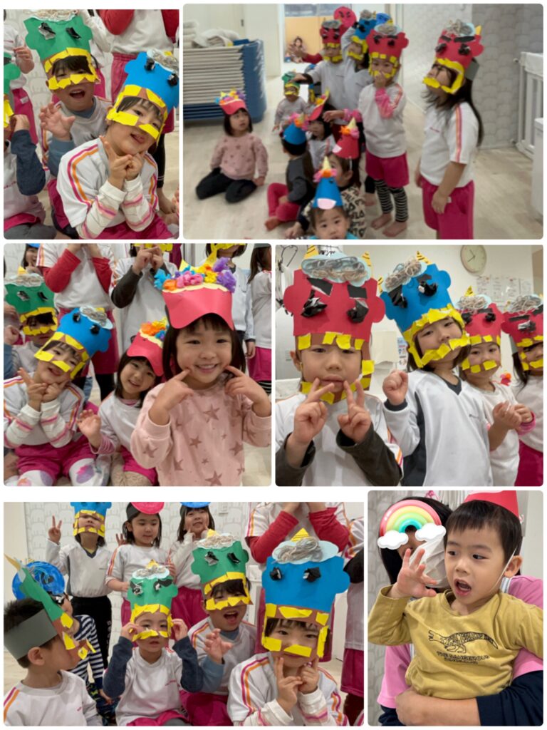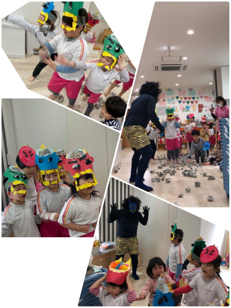 実際に鬼が登場すると少し怖くなり泣いてしまうお友達もいましたが、無事に鬼退治ができました(*^^*)
