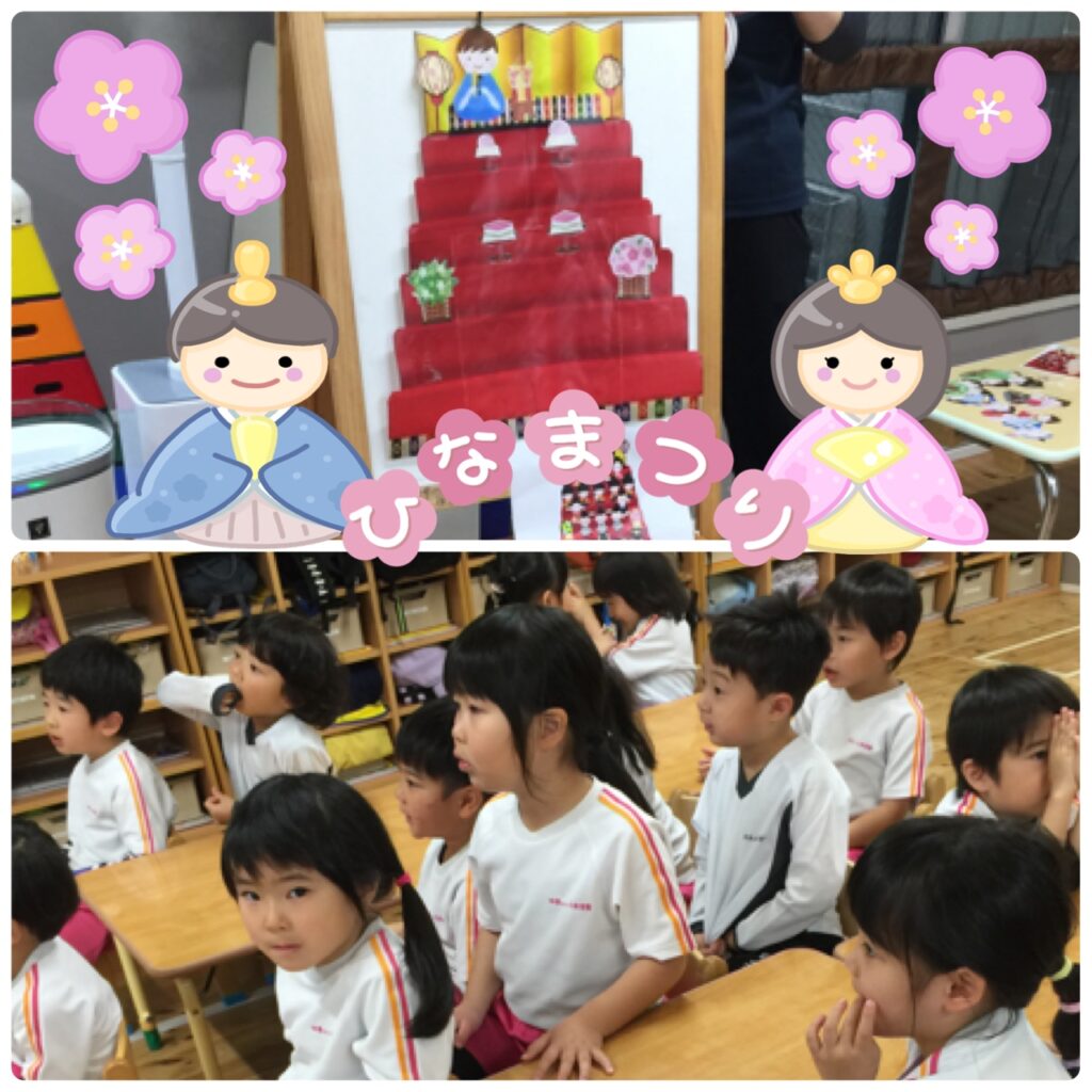 本日はみんなで先生からひなまつりについてのお話を聞きました。