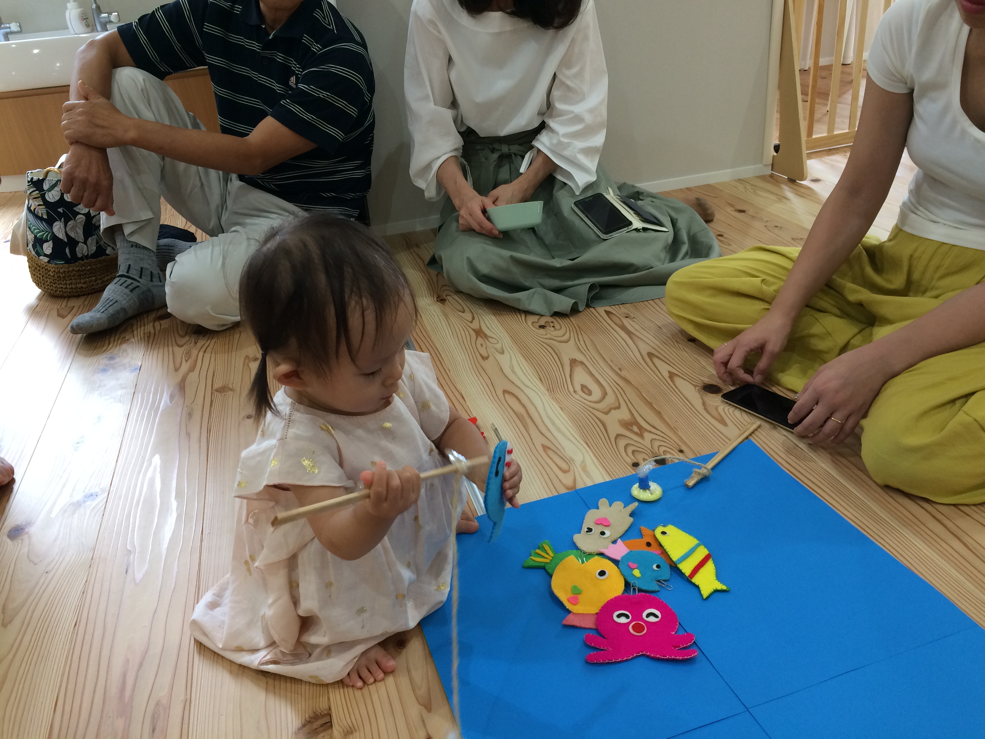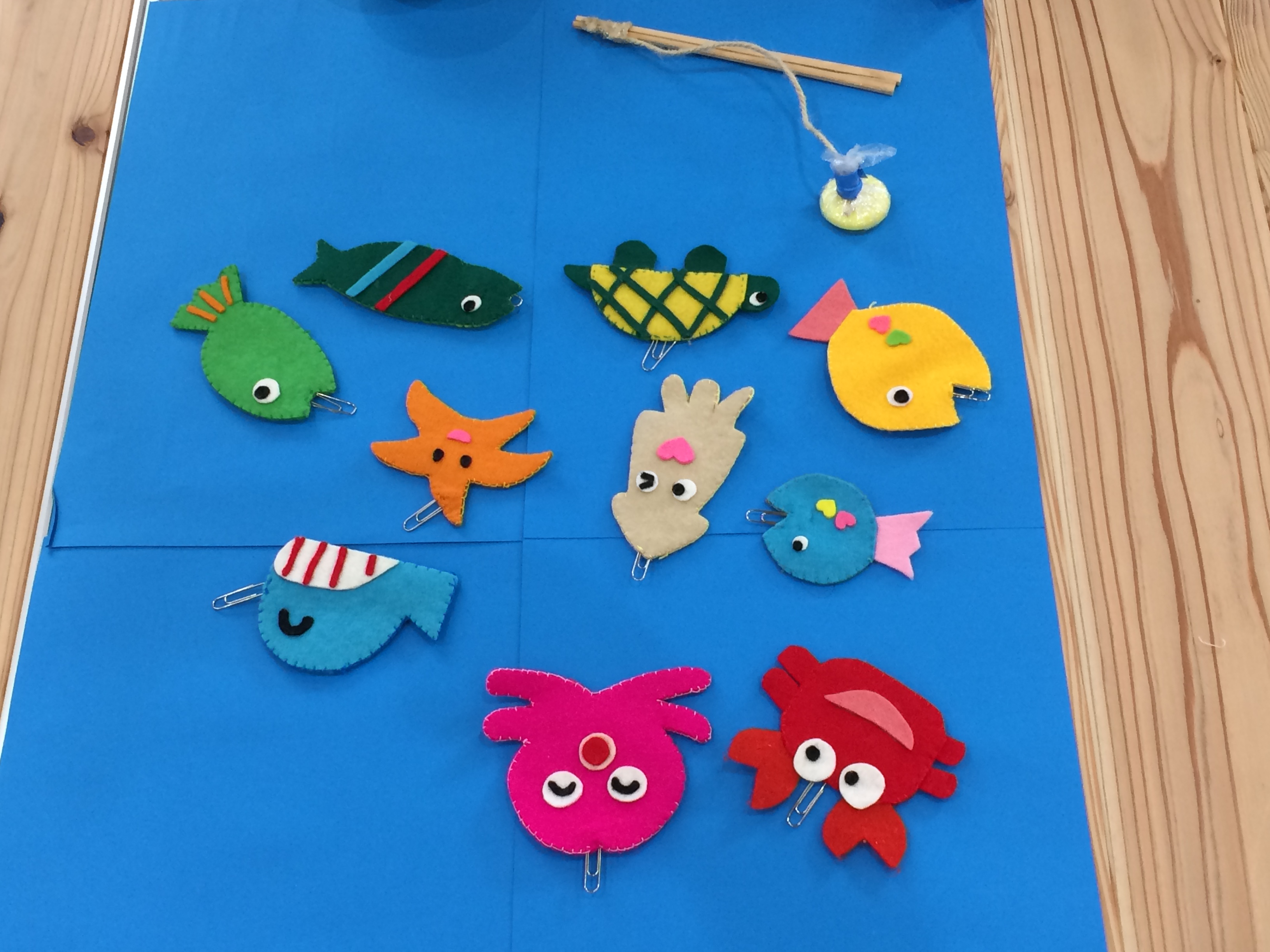 『魚釣り』『ひも通し』『洗濯ばさみ遊び』『汽車』の、好きな遊びを選んで遊ぶ、コーナー遊びを楽しみました。
