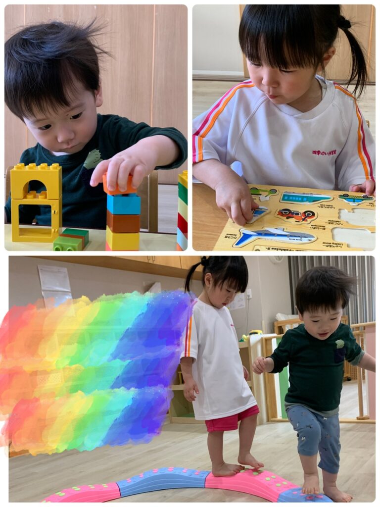 今日は、二人のお友達が保育園に元気いっぱい遊びに来てくれましたよ╰(*´︶`*)╯お友達が登園してくると、パズルやブロックなど大好きなおもちゃを出して先生と一緒に遊びました♡