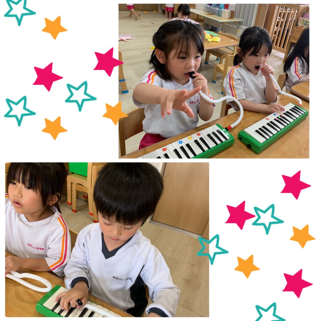 以上児さんたちは、ピアニカのおけいこでした。