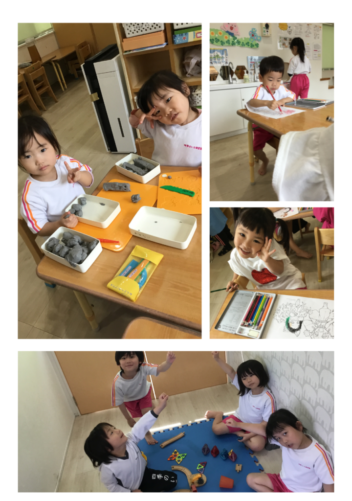 今日はぬりえや粘土、知育おもちゃを使って遊びました♪