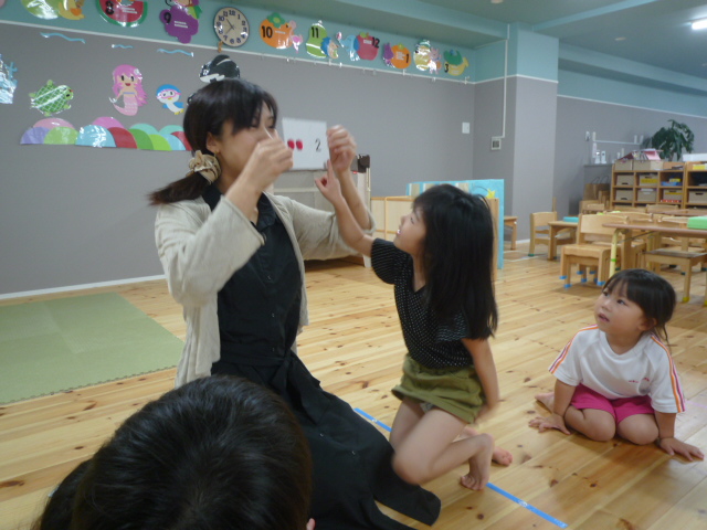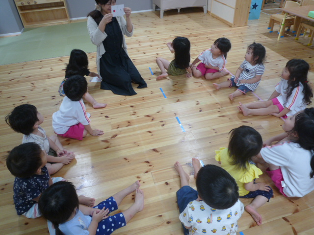 みんなで輪になってカードあそび(数字)と歌を歌いました。