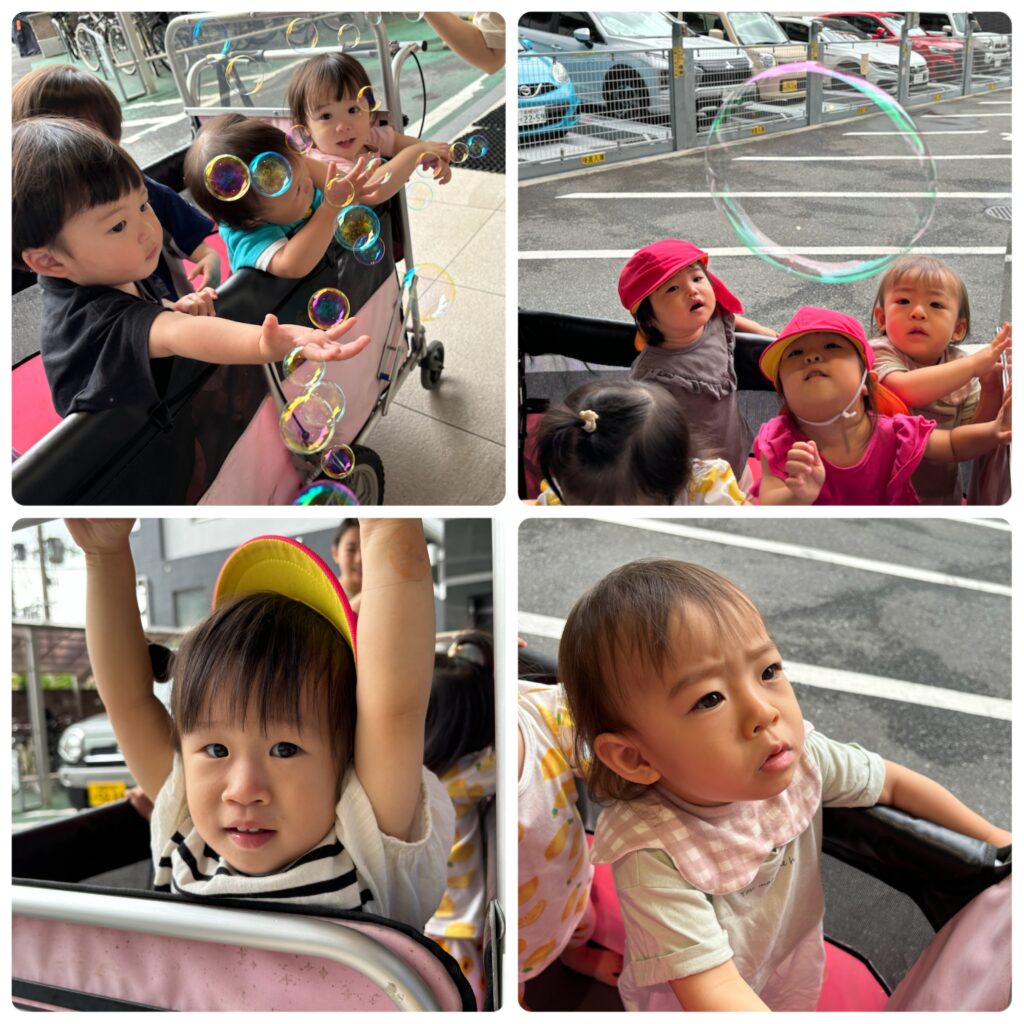 お外でお散歩カーに乗って、シャボン玉遊びもしましたよ😊🫧きゃっきゃと喜ぶ姿がとってもかわいかったです❤️🫧