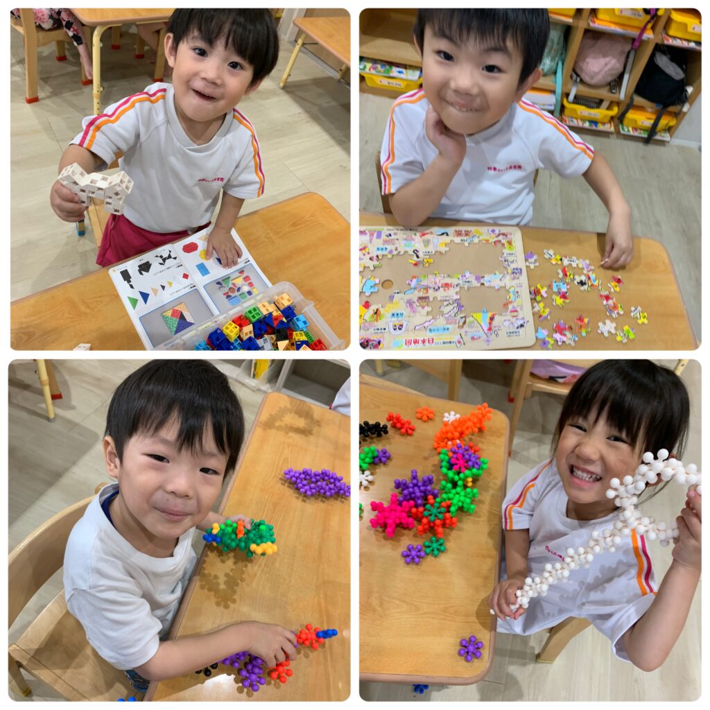 以上児さんたちはパズルやブロックなど、おのおの自由遊びを楽しみました☺️✨