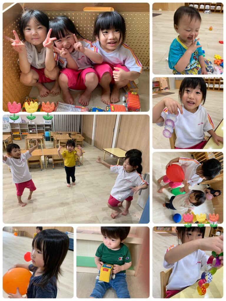 ブロックやおままごと、風船にダンスにたくさんの遊びをして楽しく過ごしましたよ♪体もたくさん動かしました!!子どもたちの笑い声が今日も響き渡っていました♡