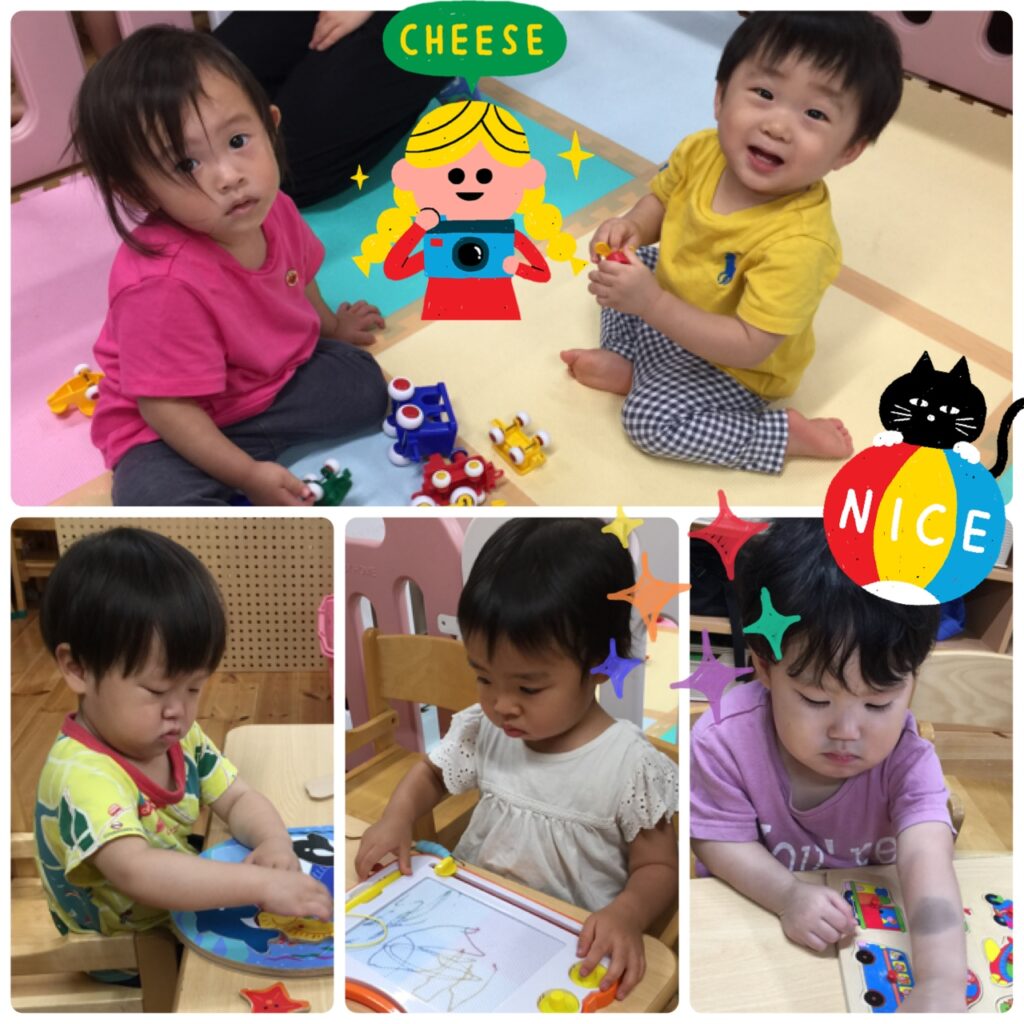 りす組さん、ねずみ組さんはパズルやブロック、磁石のお絵描きをして遊びました。