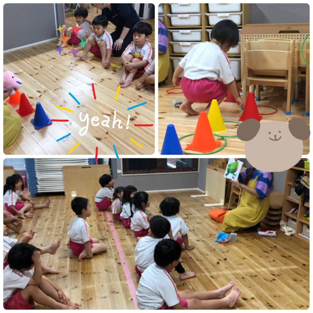 ぱんだ組さん、ぞう組さんは英語の絵本を読んだり、英語の歌でダンスを踊ったりしました。