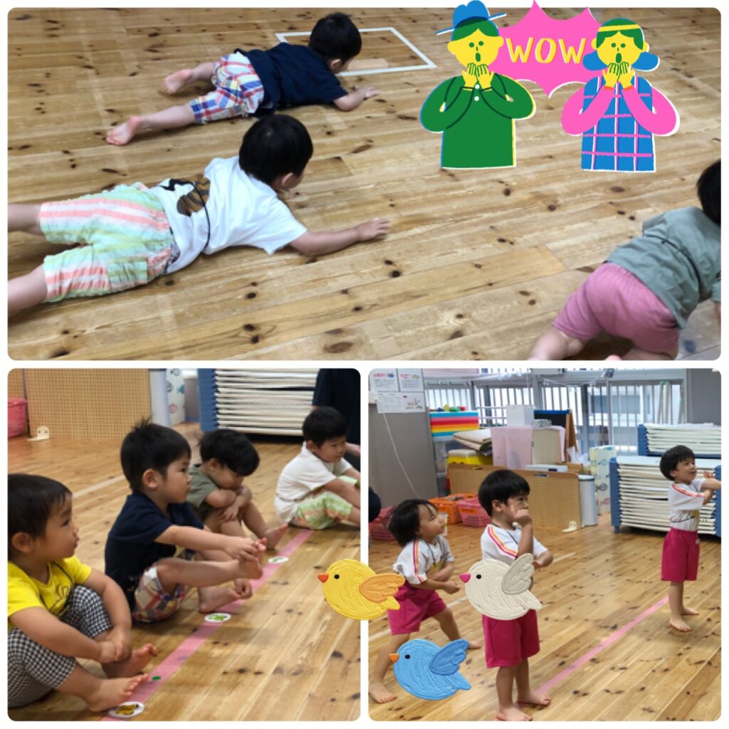 先生に、わにさんになって移動しよう!と言われるときゃっきゃと笑顔たくさん、ずりずり這って移動していました!