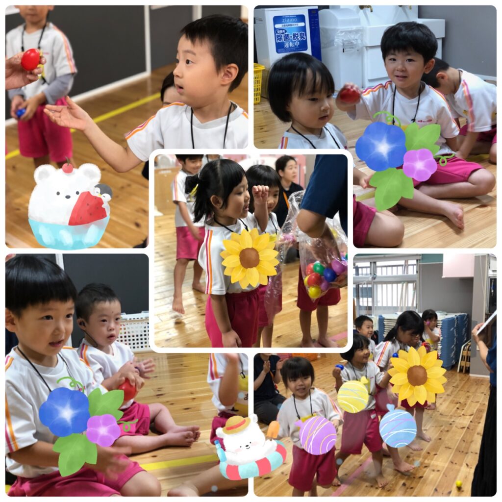 カラフルマラカスを使って、歌に合わせて踊りながら楽しみました♬