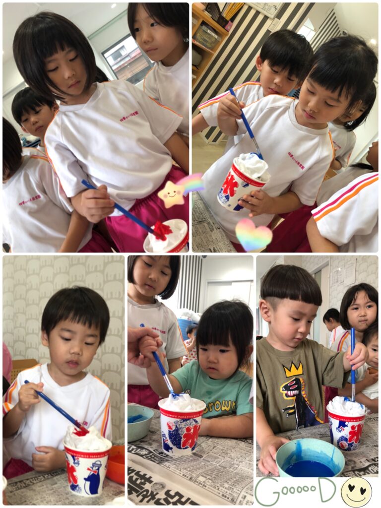 今日は夏の製作で、みんなが大好きなかき氷を作りました♪