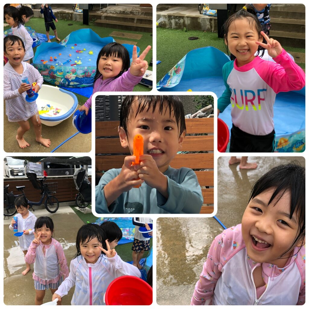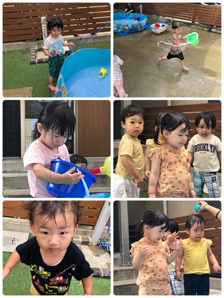 今日も晴天!暑い1日ですね。そんな日はプール!水遊び!とっても気持ちよく遊べました^^