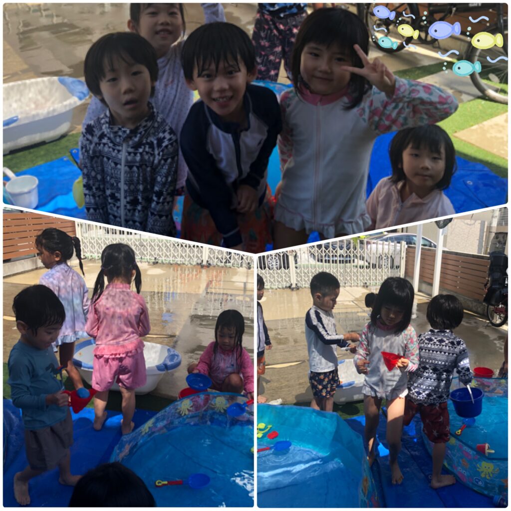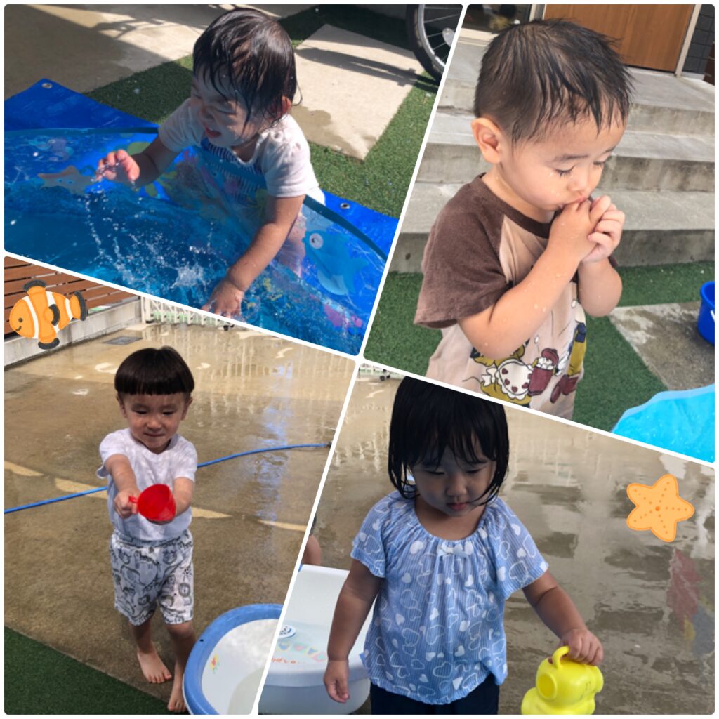 今日もとても暑いのでみんなで水遊びをして過ごしました(*^^*)