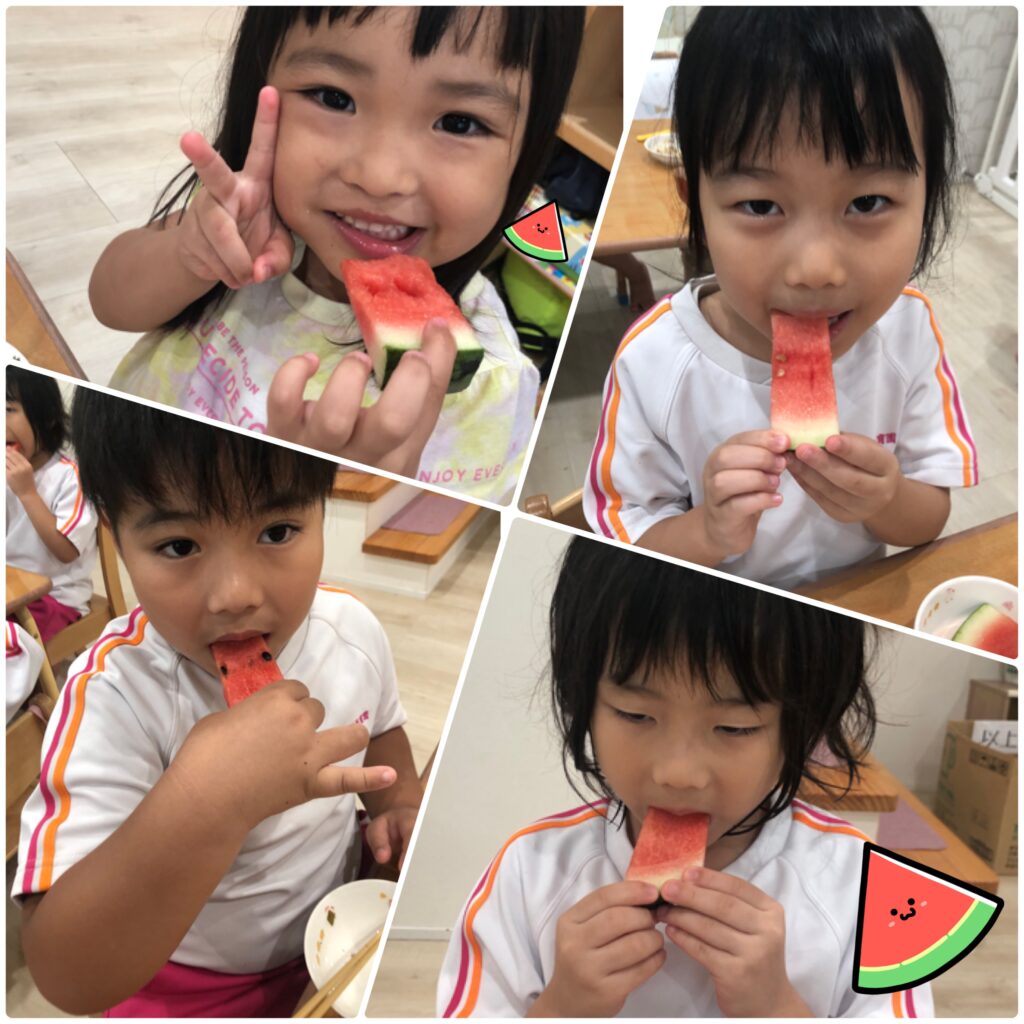 今日の給食のデザートにスイカ🍉が出ました♡