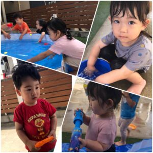今日はみんなで水遊びをしました!!