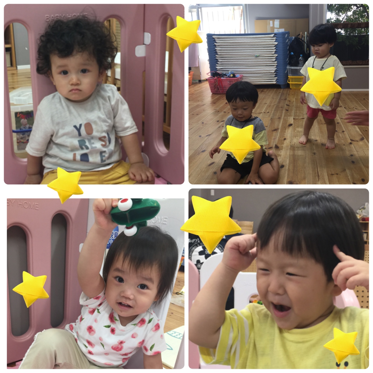 保育士があんぱんまんの手遊びに合わせ、あんぱんまんのポーズをしたり、バイキンマンのポーズをする姿が見られ、とても可愛らしかったです。