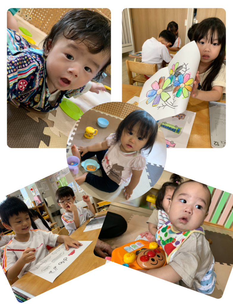 こんにちは、博多園です。 今日も暑いですね~、お散歩は断念、室内でお絵描きしたり 大きなビニールシートで風を起こして遊んだりしました♪