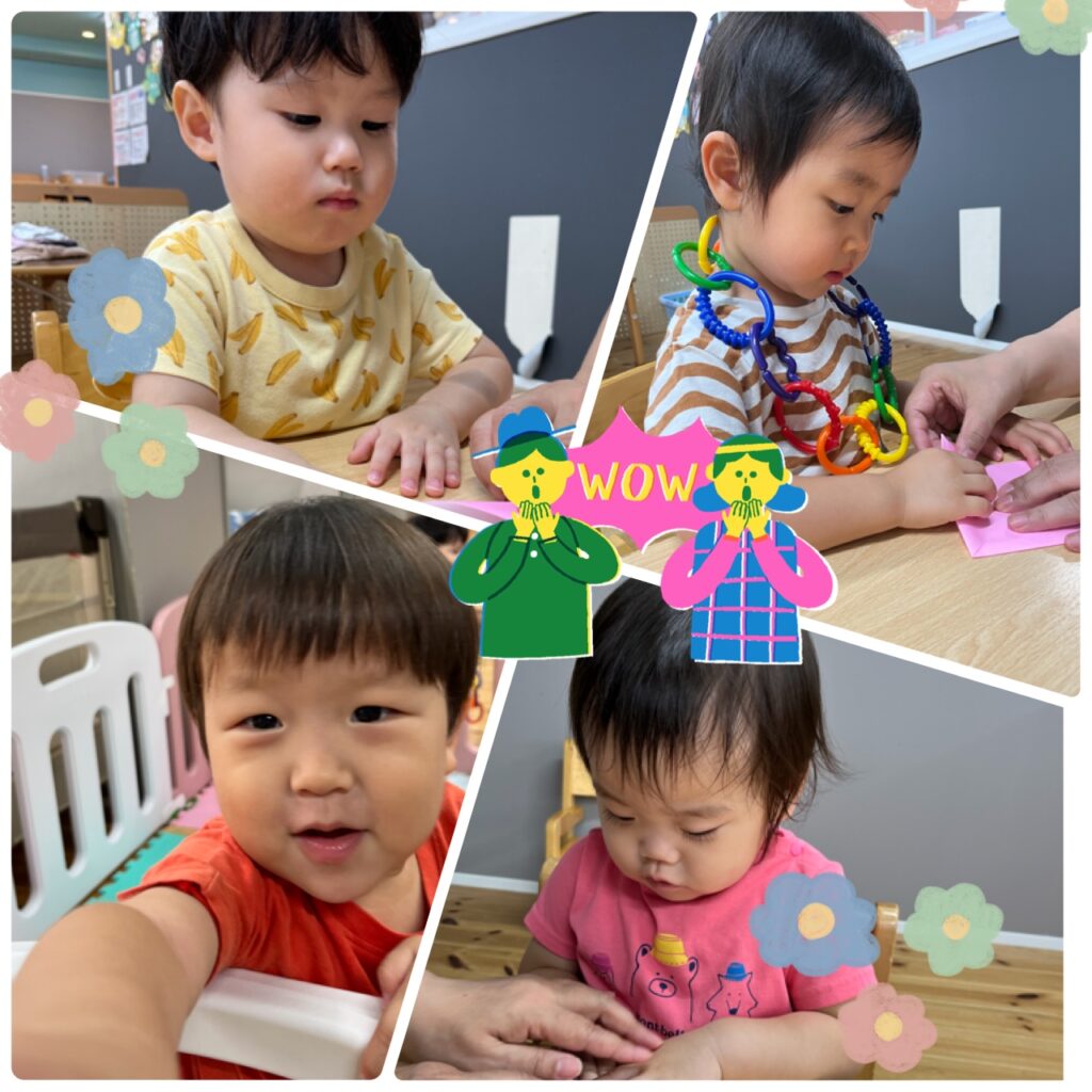 紙が折れたり、シールが貼れるととニコ~っとかわいい笑顔を見せてくれました!