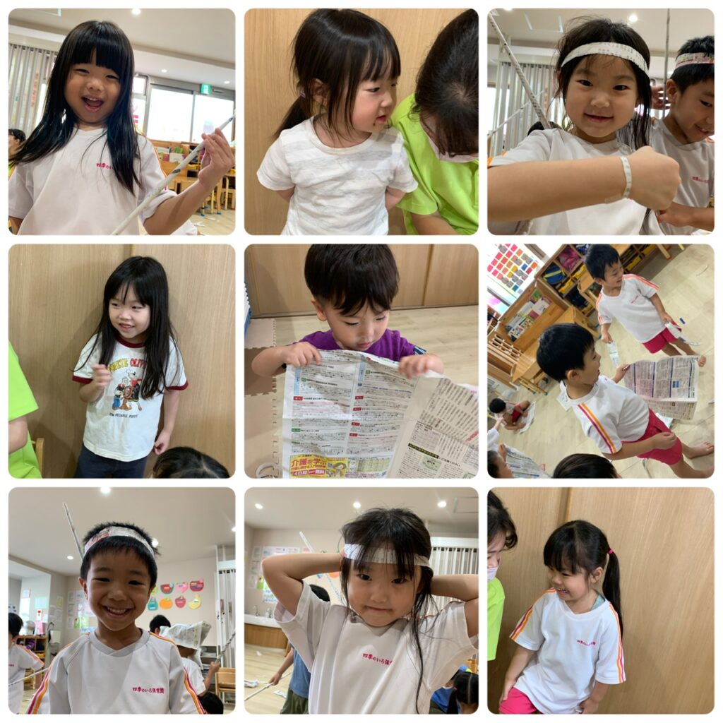 つき、あおぞら、にじ、ひかり組さんは、ダンス教室の後、子どもたちリクエストの新聞紙遊びをしました!!お友達や先生と楽しく遊びましたよ✨✨